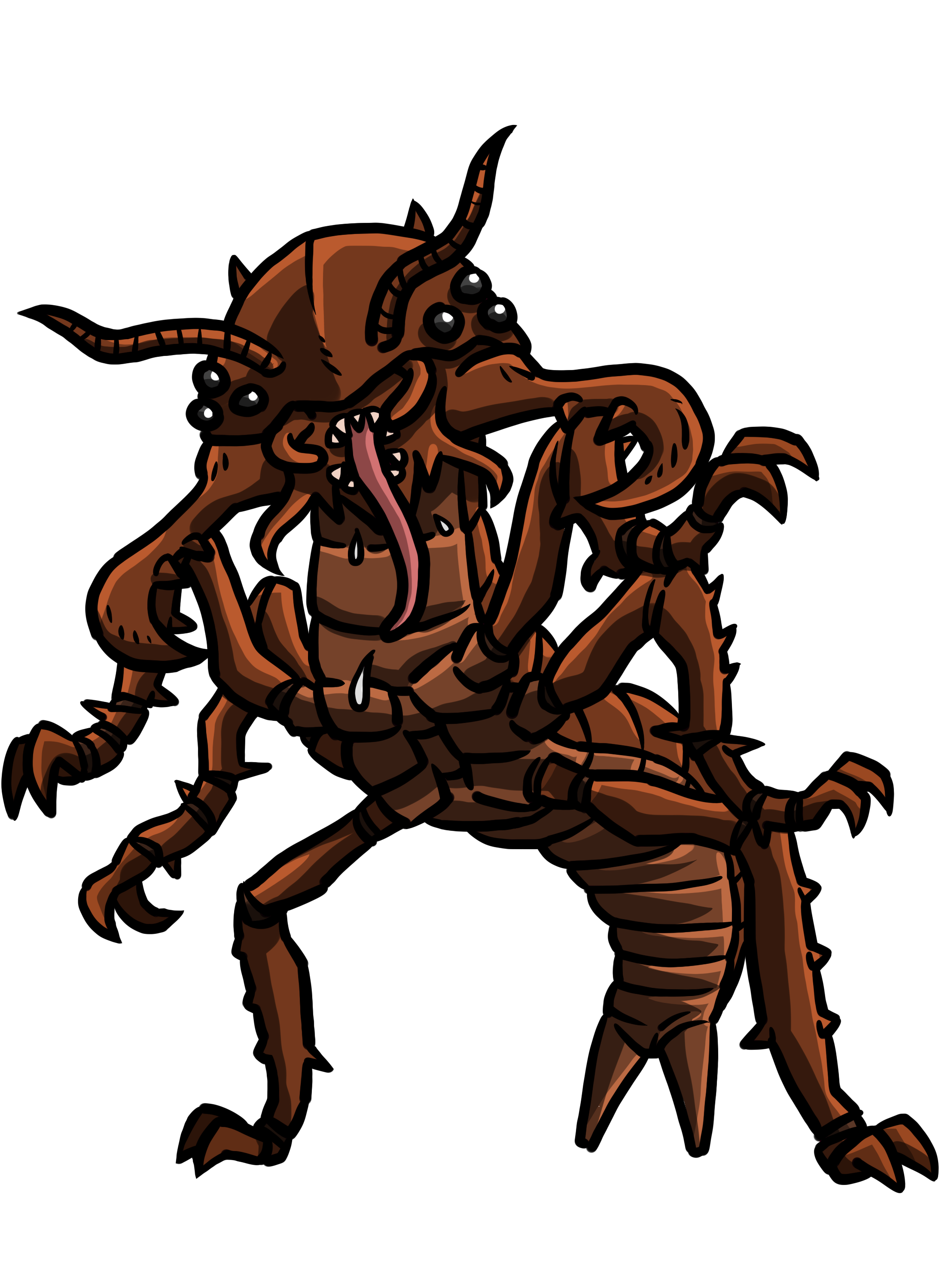 This burrowing, bug-like monster scuttles about on six legs, drooling noxious green ichor from its clacking mandibles.