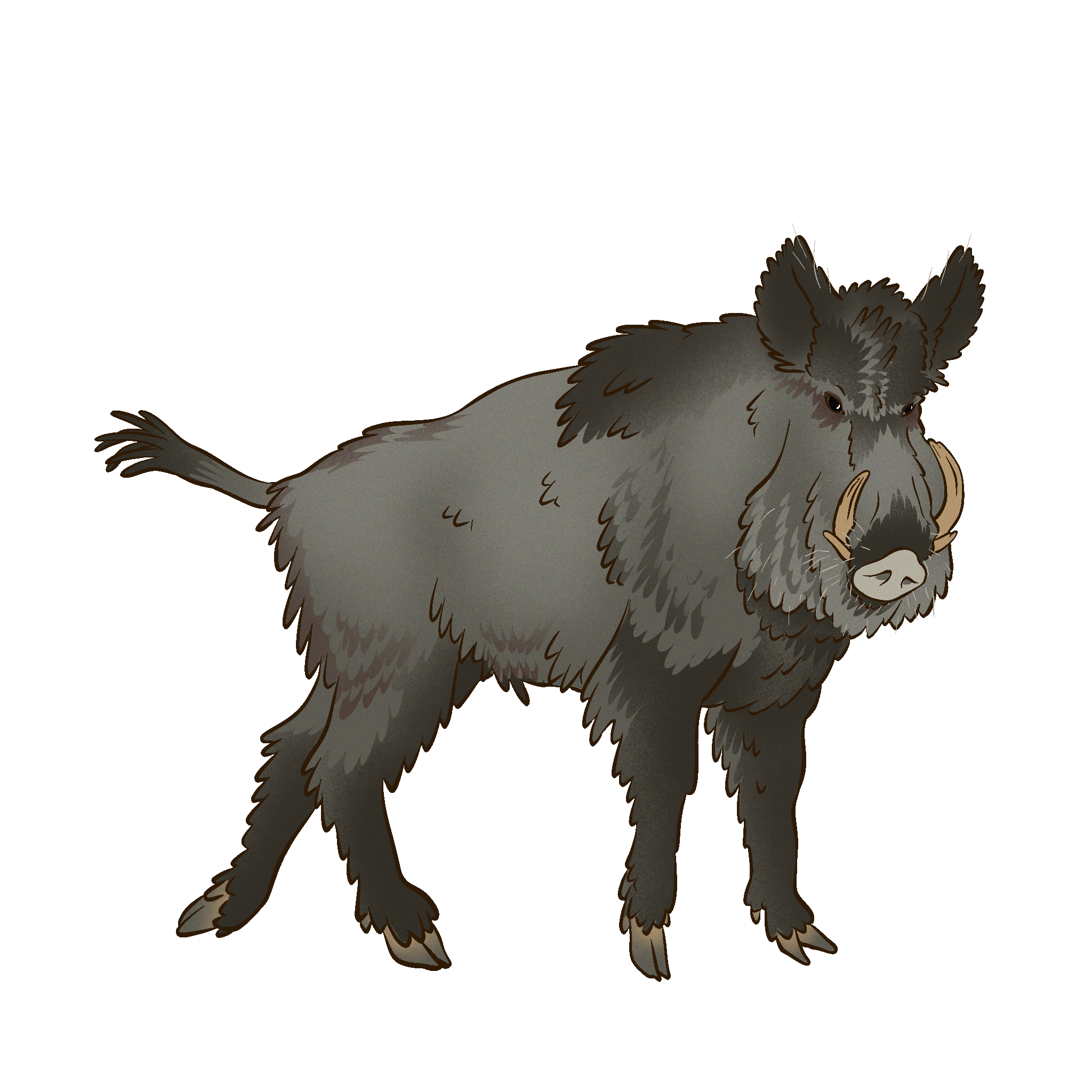 Omnivorous wild boars that dwell primarily in forests. Can be irascible and dangerous, if disturbed.