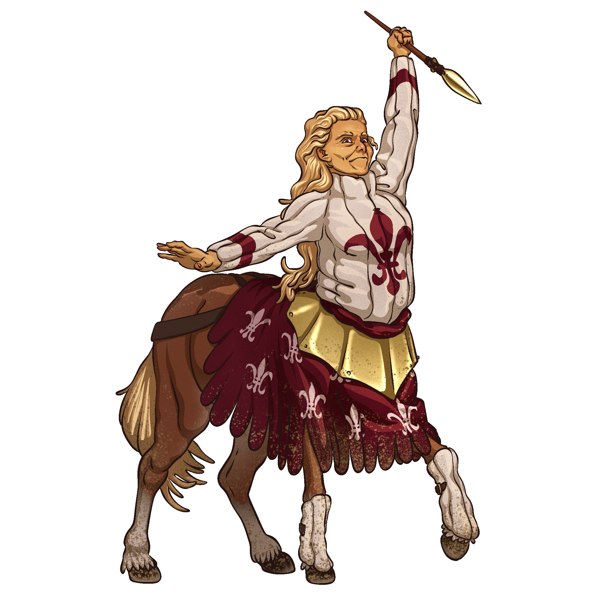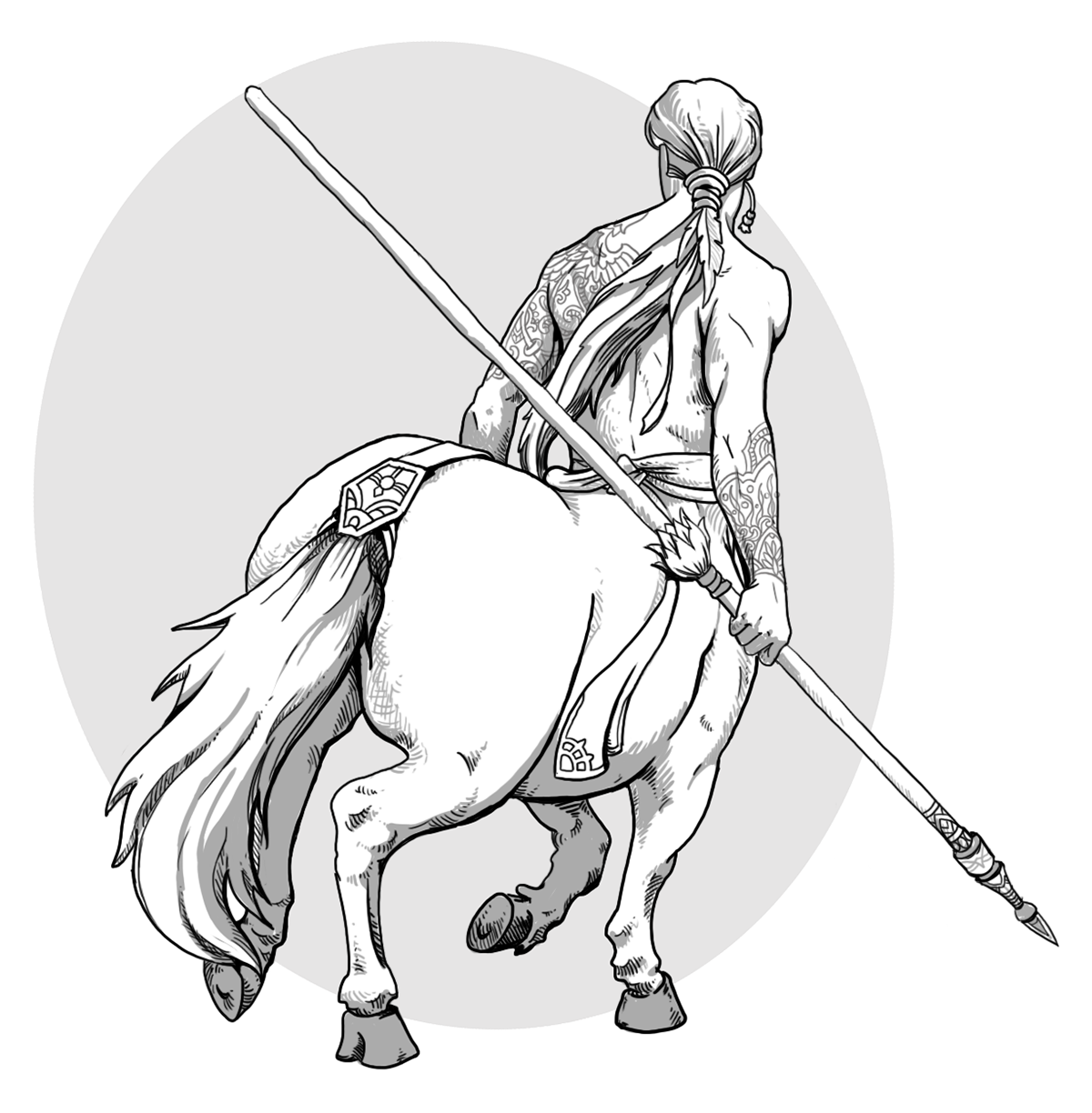 This creature has the sun-bronzed upper body of a seasoned warrior and the lower body of a sleek warhorse.