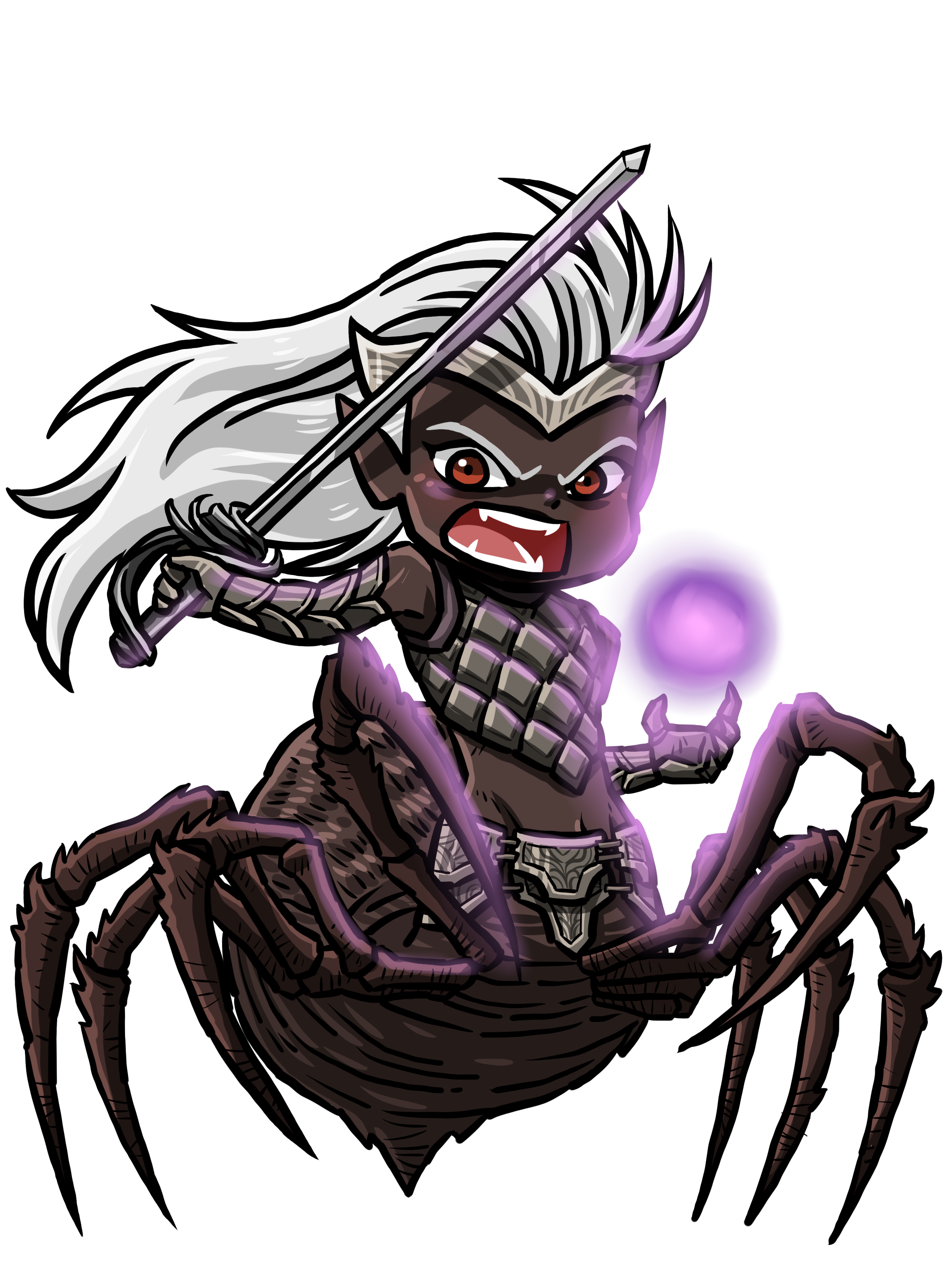 Created from the body of a drow, warped and mutated through special poisons and elixirs to take on the characteristics of a giant spider, the drider is a dangerous creature.