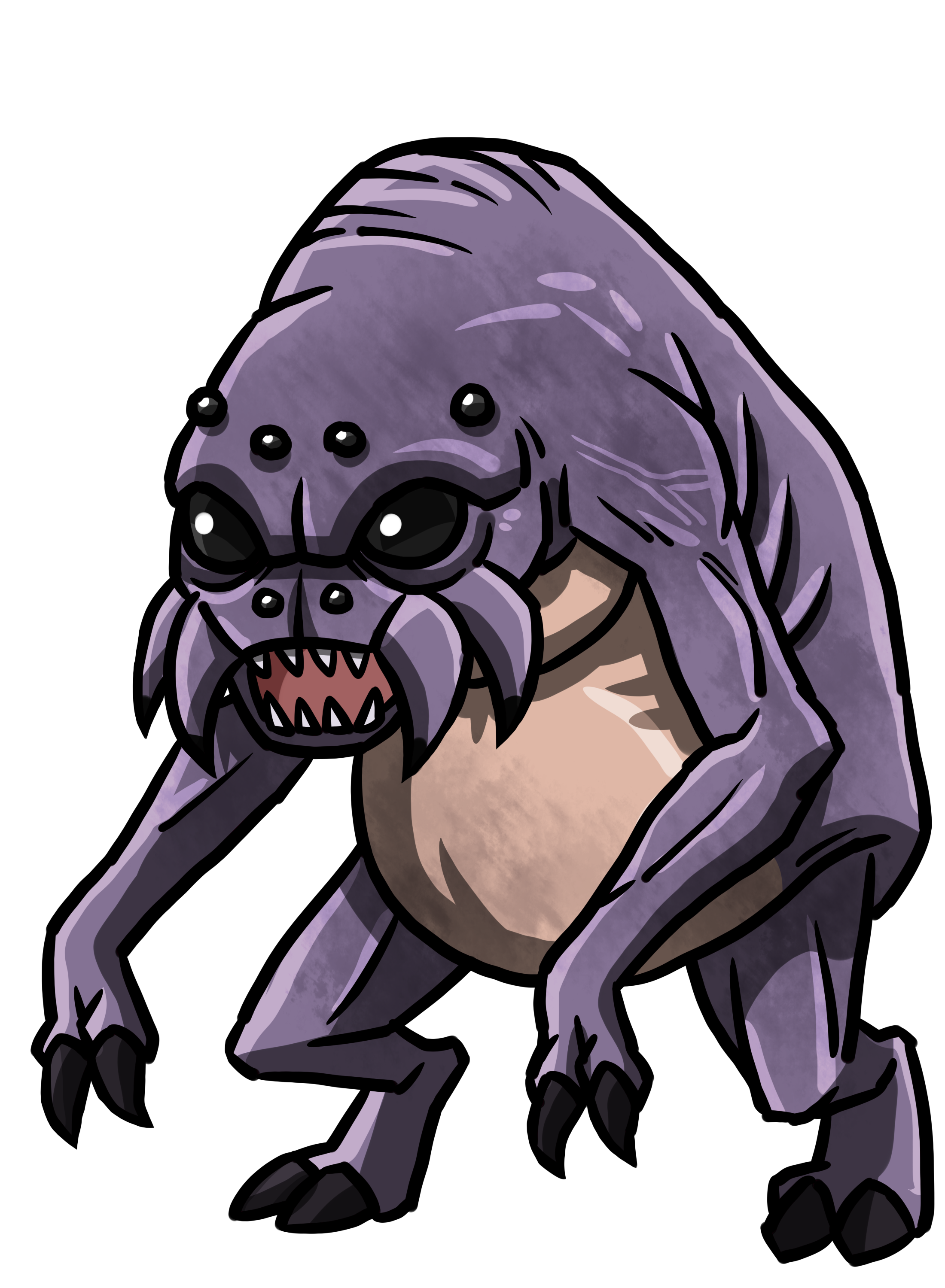 Ettercaps are typically 6 feet tall and weigh about 200 pounds. They are solitary creatures and rarely group with others of their kind, even to mate. When they do group, they tend to attract a variety of different spiders, forming a strange collective of ettercaps and arachnids. Ettercaps are known for building cunning traps out of webs and other natural materials, using them to trap prey. They build shelters out of webbing, often high up in the trees away from other ground-based predators, and use monstrous spiders as lookouts and guardians.