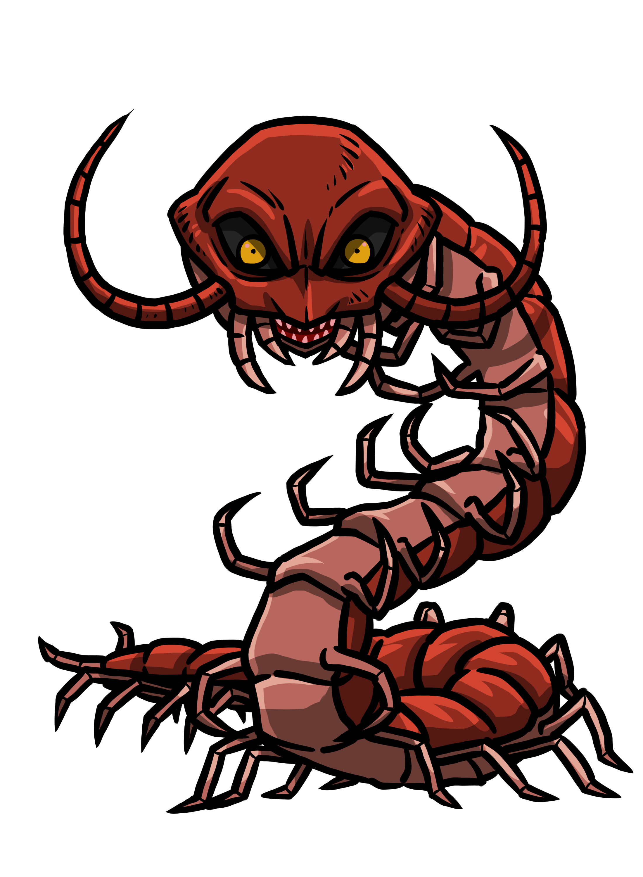 1' long centipedes that dwell in dark, damp locations.