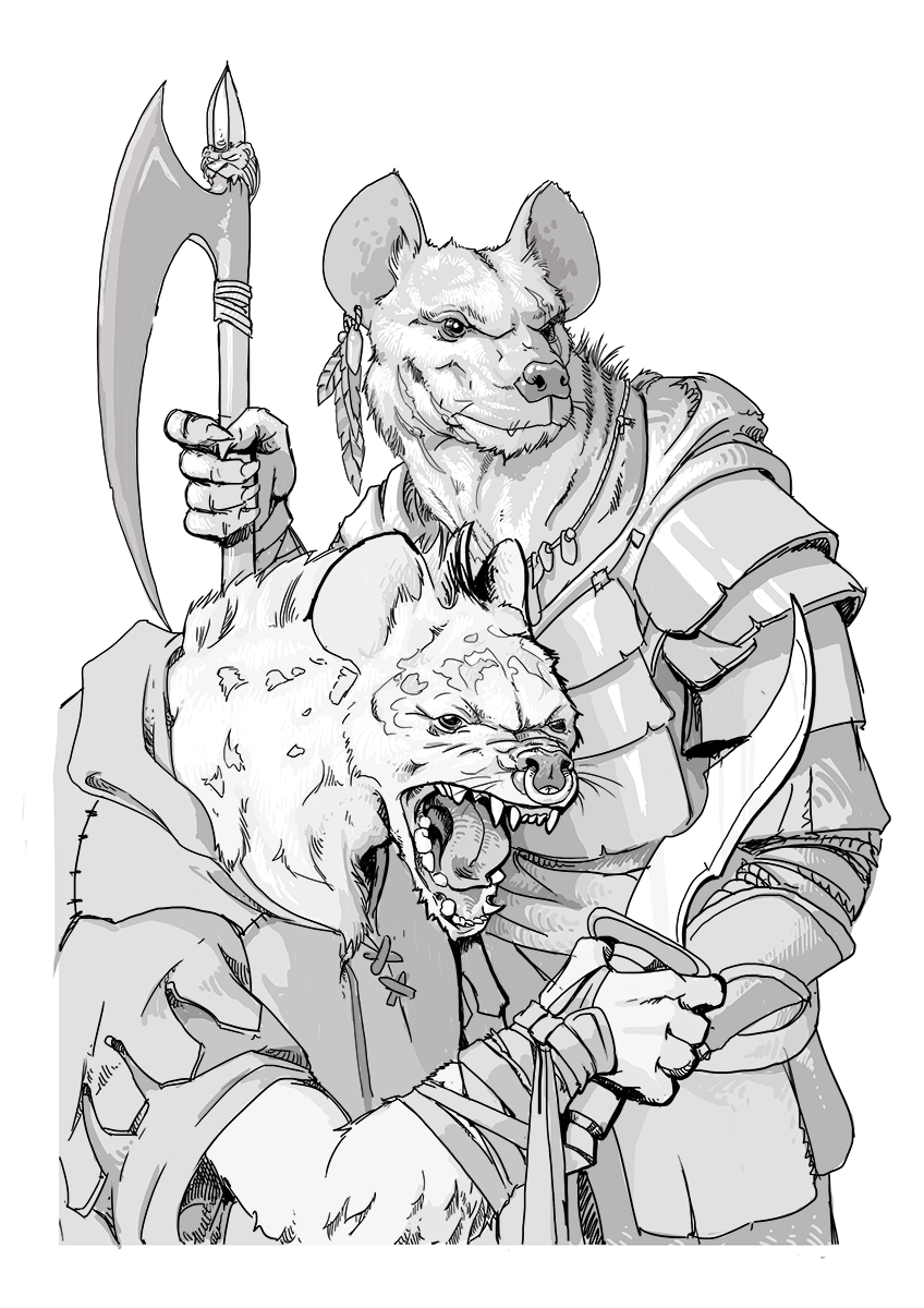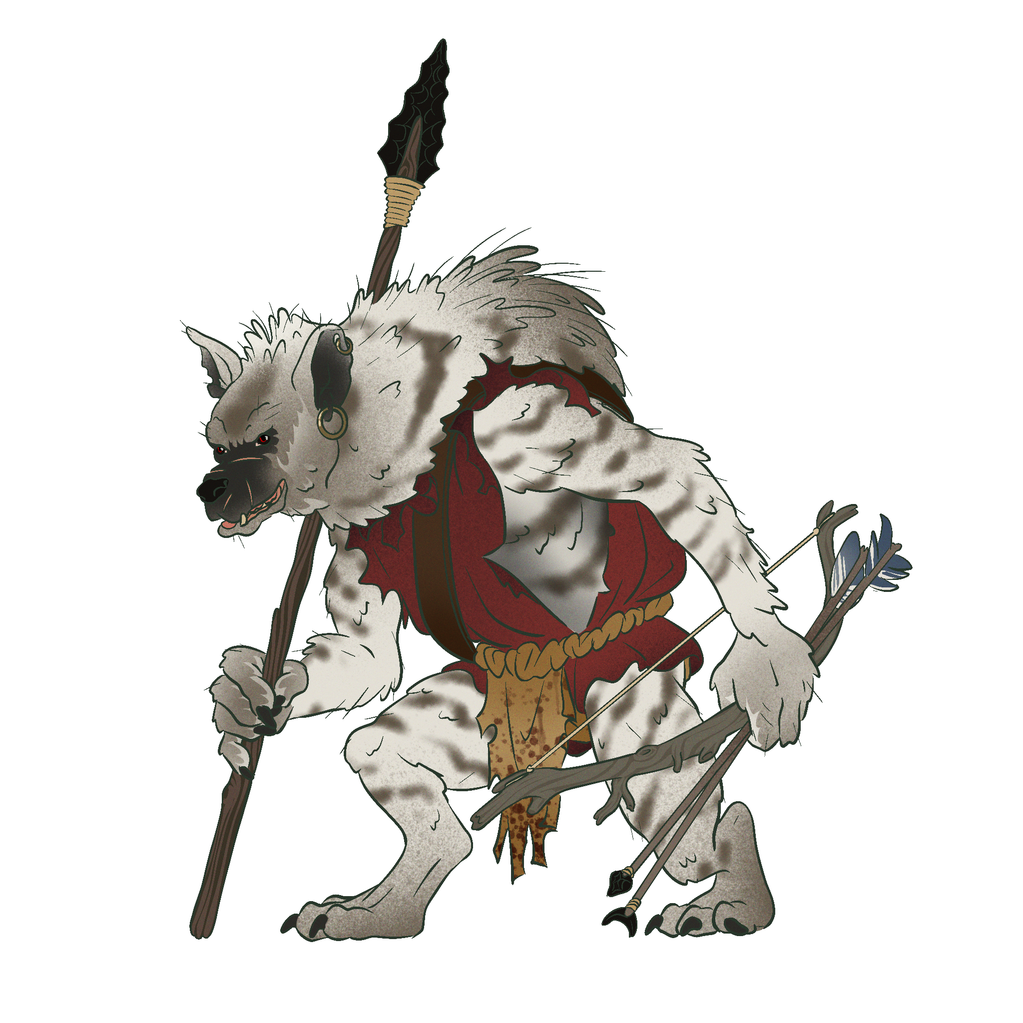 Flinds are a race closely related to gnolls. The two races share some strong similarities, and at first sight inexperienced adventurers could easily confuse the two. Flinds are much stockier than their lanky kin, much stronger and hardier, and are certainly more dangerous.