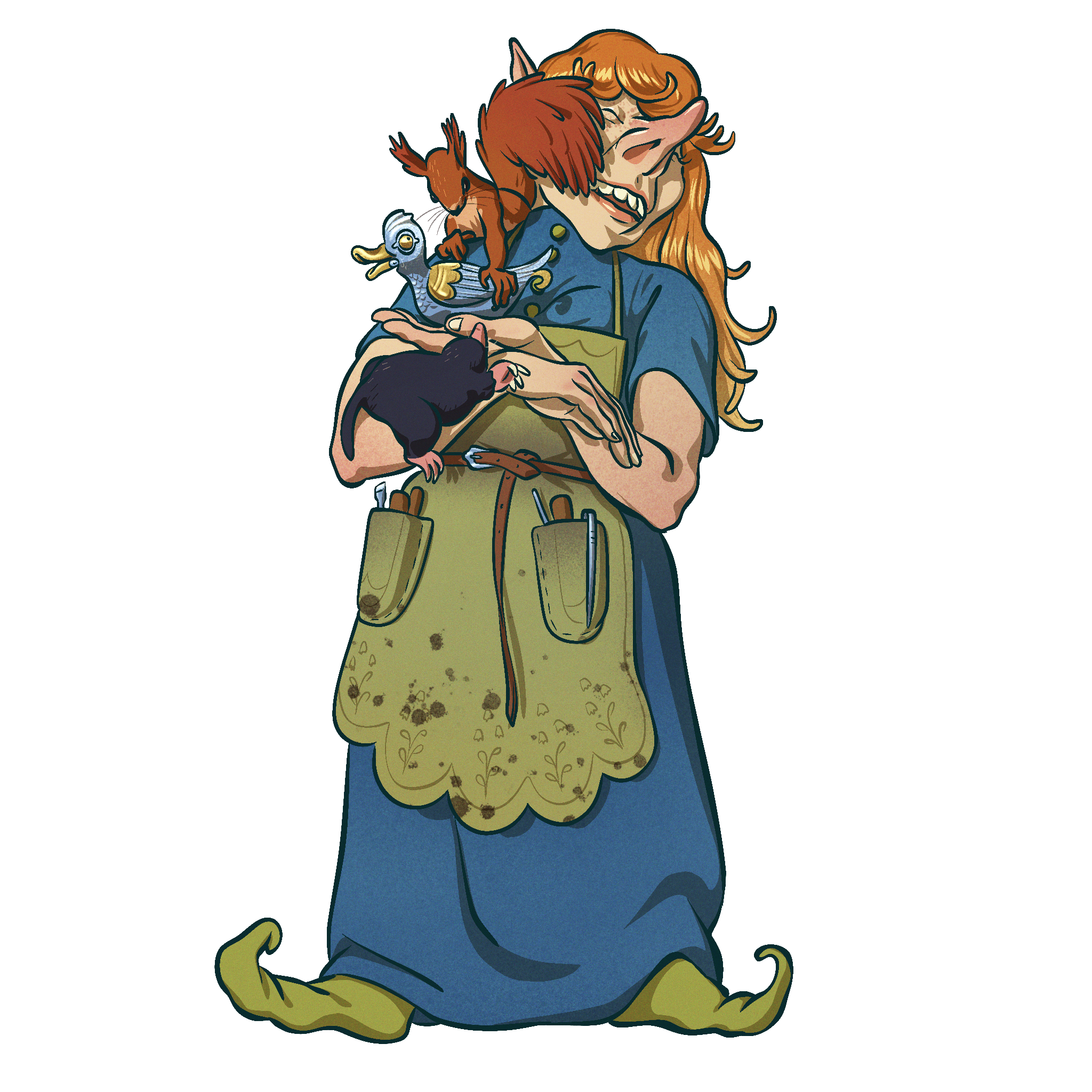 Short demihumans with long noses and beards. Smaller cousins of dwarves, whom they get along with. Prefer to live in burrows in non-mountainous country.