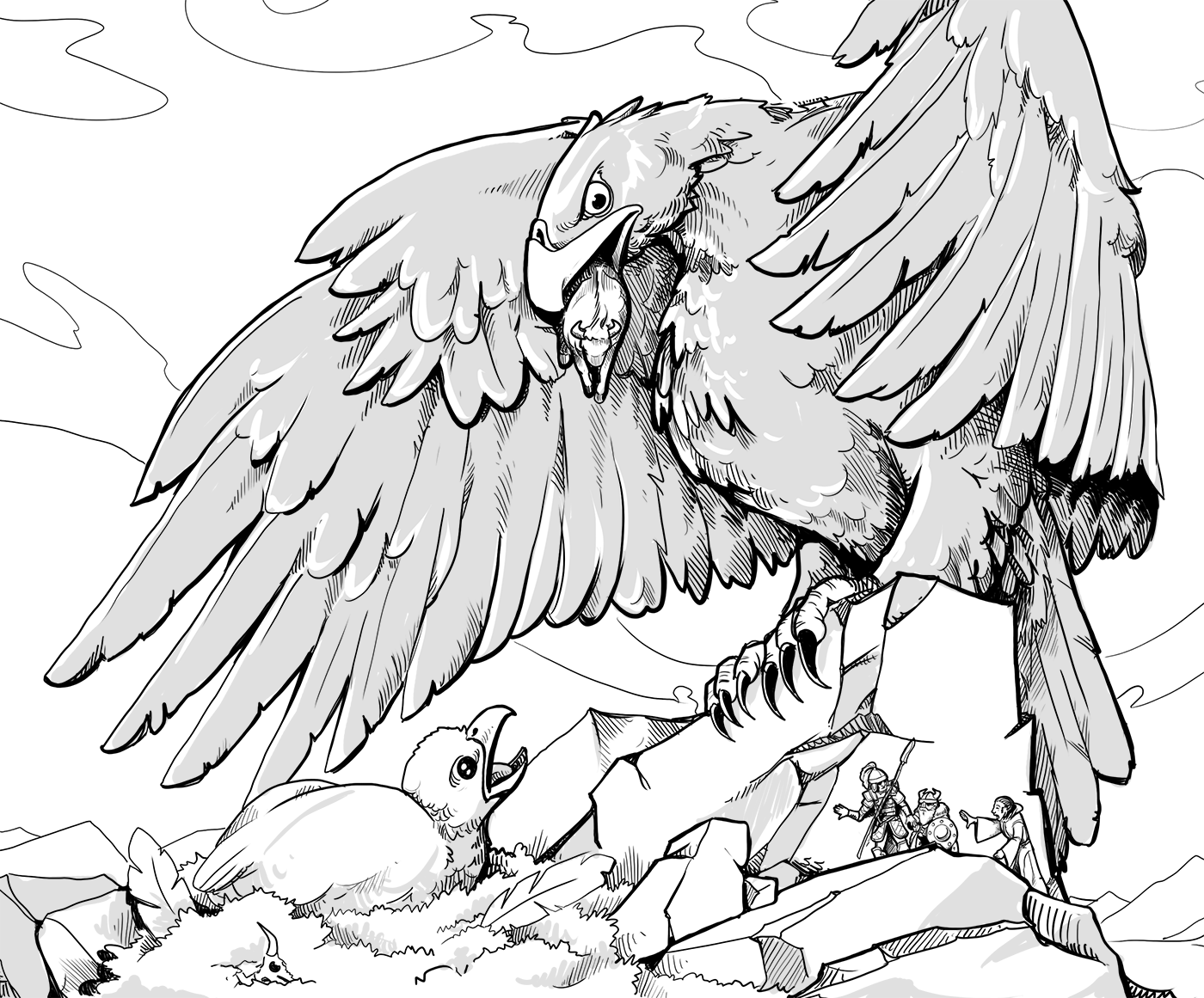 Gigantic birds of prey that nest in the highest peaks of isolated mountain ranges. Will attack intruders, if approached carelessly.