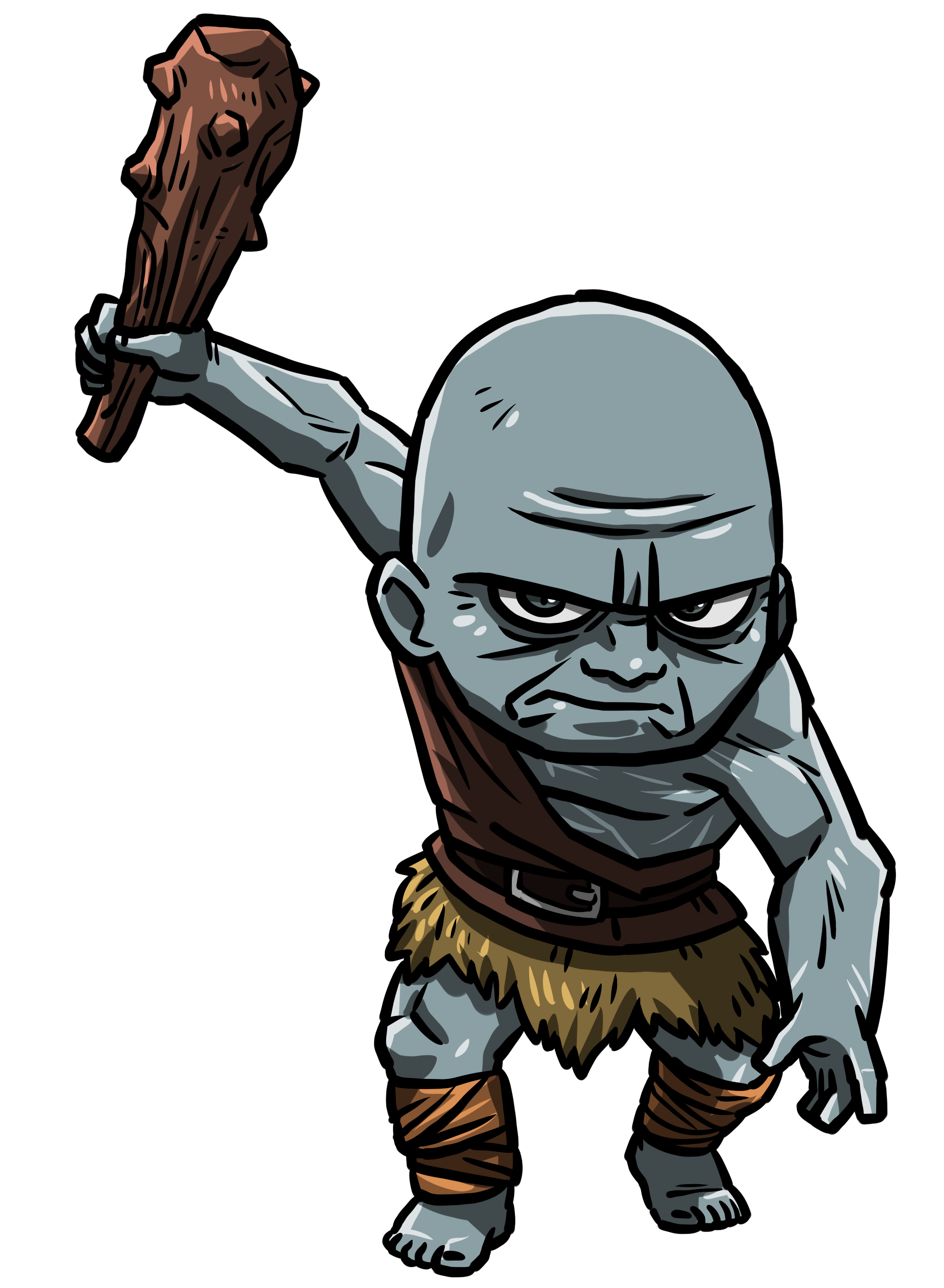 This giant has chiseled, muscular features and a flat, forward-sloping head, looking almost as if it were carved of stone.