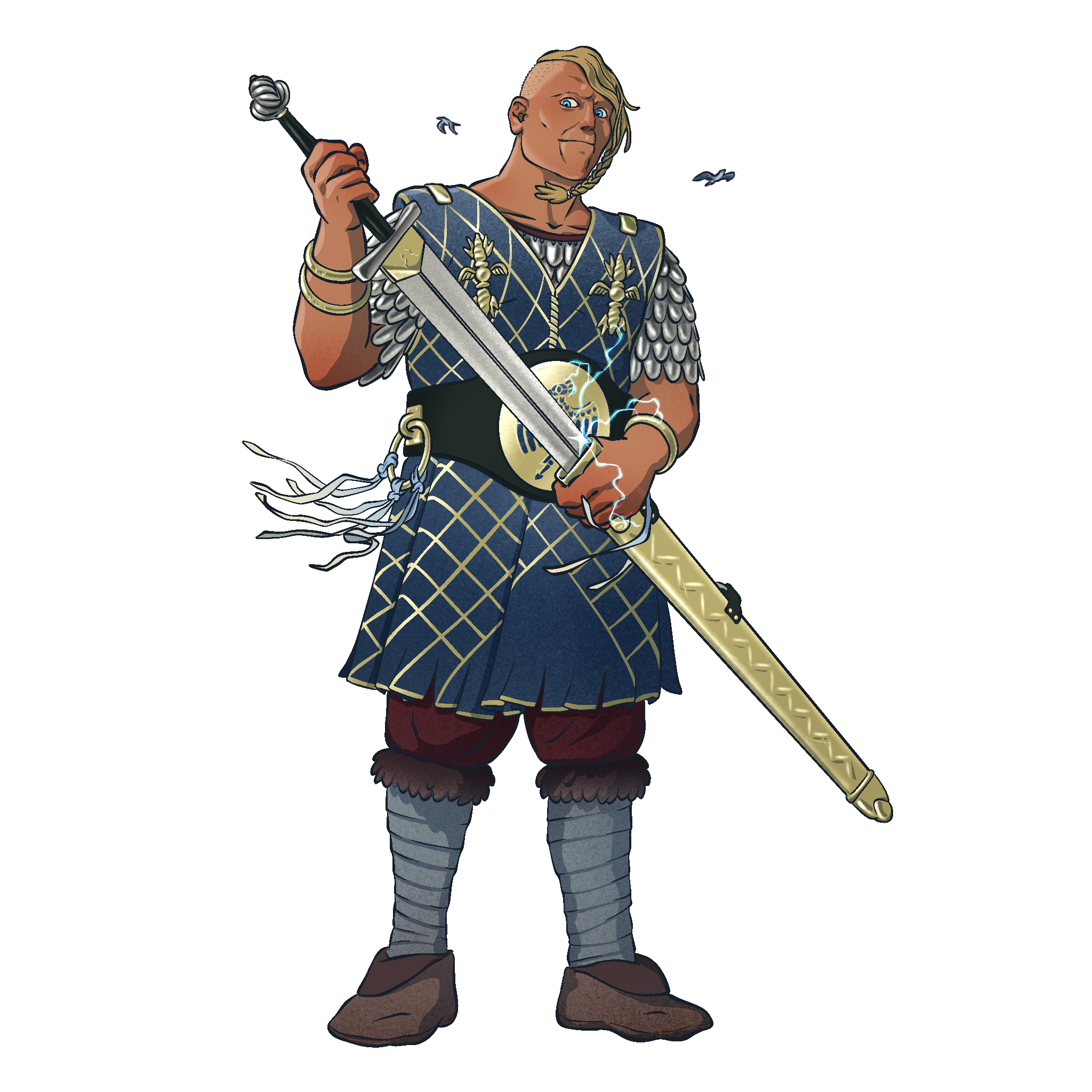 This giant is a towering, muscular human of heroic proportions, with bronze skin, dark hair, and sparkling green eyes.