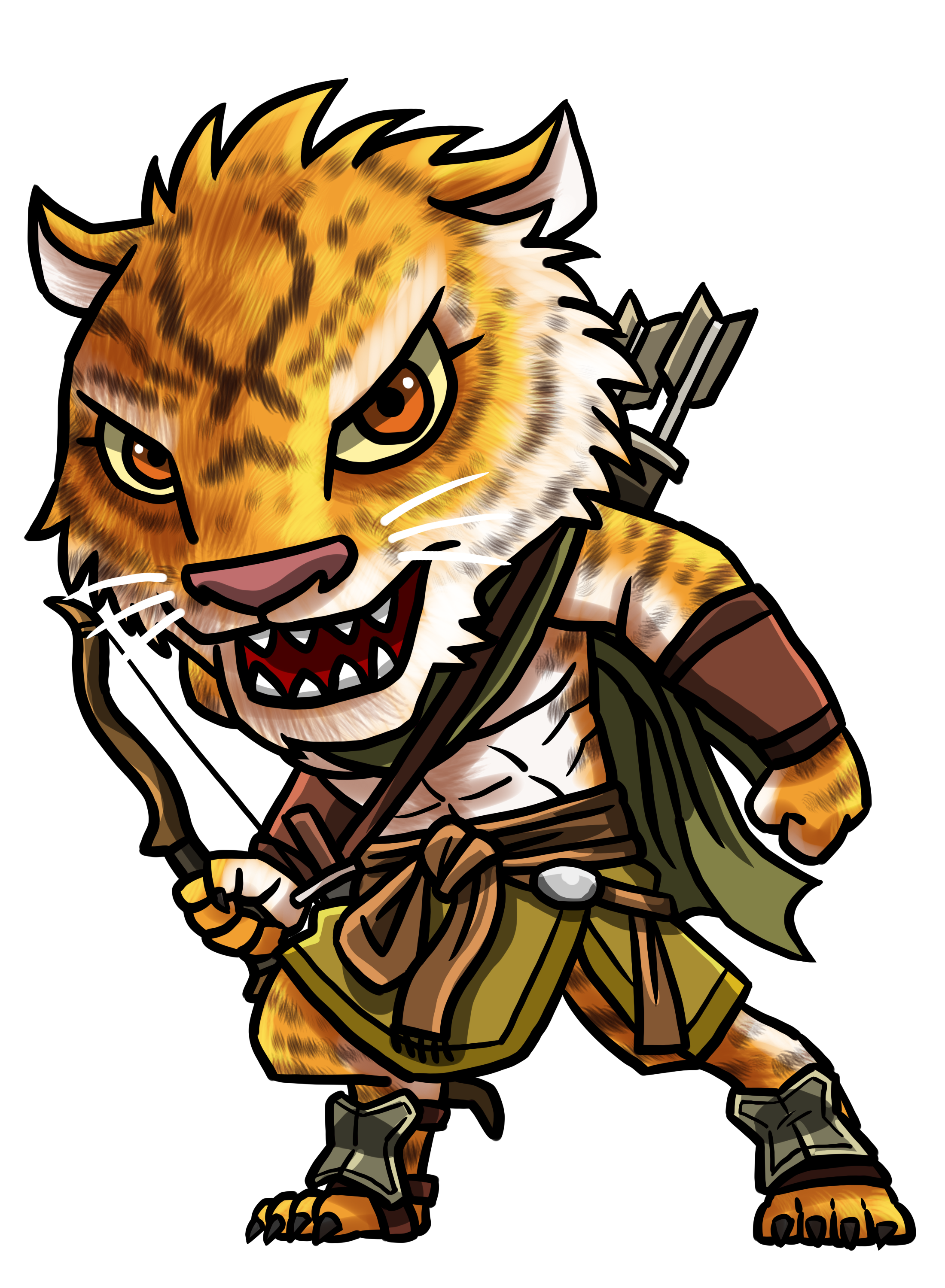 In humanoid form, the weretiger makes two scimitar attacks or two longbow attacks. In hybrid form, it can attack like a humanoid or make two claw attacks.